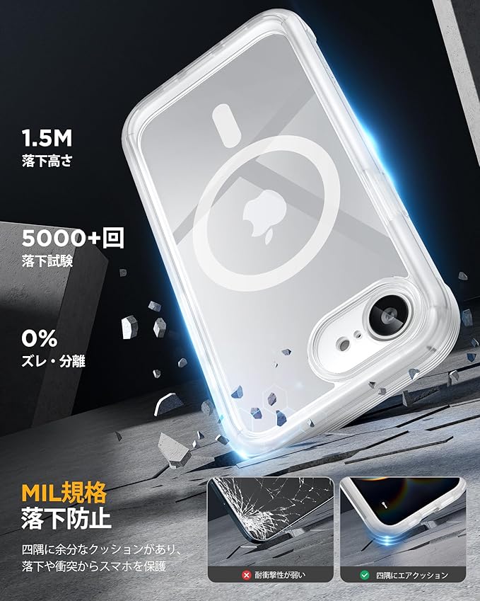 Miracase iPhone 16E ケース MagSafe対応 あいふおん16e スマホケース 2025 9H強化ガラス 6.1インチ フルカバー 360 全身保護 ワイヤレス充電対応 マットクリア | KAZESHOP