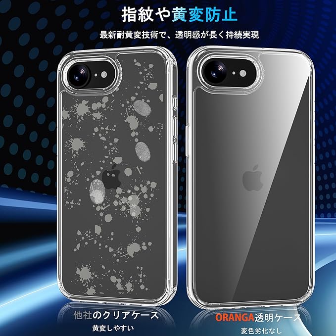 【最新先端技術・黄ばみ無し】透き通ったバックパネルの無黄PC素材は無論、側面にもドイツ高級TPU素材を採用し、最先端技術ADM(Anti discoloration material)に加え、黄変防止力は市販透明ケース20倍上げ、紫外線や汗によるTPUの変色を防ぎ、指紋や汚れからも守ります。長く使用でも初見に変わらず綺麗に見えます。対応機種:iPhone 16e 用