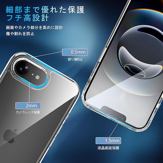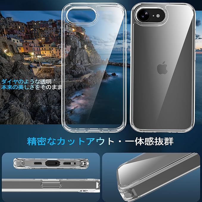 【水晶のような透明感と超高耐衝撃性】透き通って高い透明度を誇り、背面がiphone16eのカラーや質感をそのまま映え、高級感が溢れて、すごくかっこよくてこのクリア感にいつまでも見惚れてしまいます。米国国防総省の耐衝撃試験「MIL-STD-810G」に認証済み、耐衝撃性能は20倍アップ。いphone16eを全方向からしっかりと保護できす。
