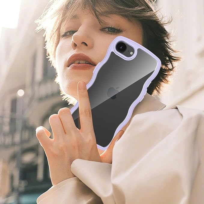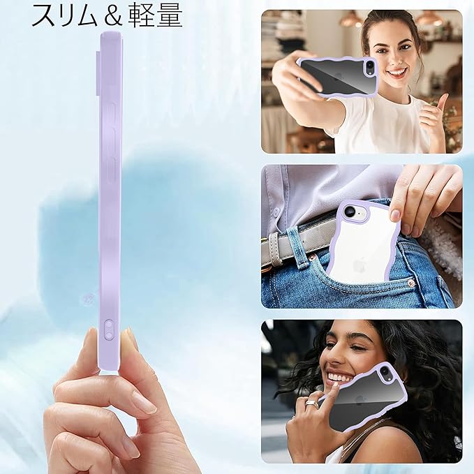 クリア iPhone 16E ケース かわいい 波状フレーム うねうね カバー 耐衝撃 アイフォン16e スマホケース 滑り止め 人気 可愛い 落下防止 ワイヤレス充電対応 (パープル) | KAZESHOP