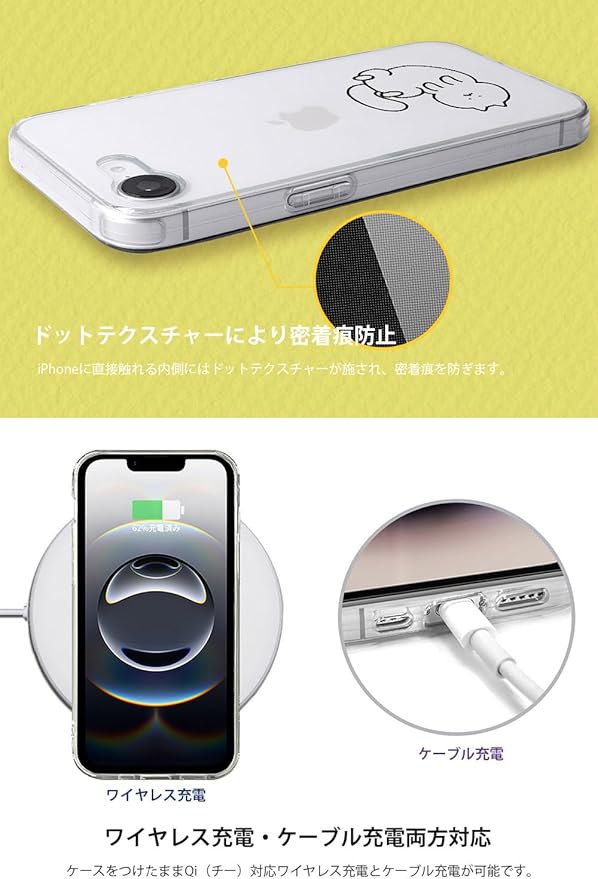 ケースをつけたままQi(チー)対応ワイヤレス充電とケーブル充電が可能です。