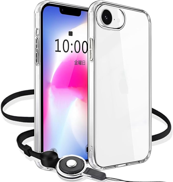 適用 iPhone 16e ケース クリア 【 ストラップ 三本付き】 薄型 アイフォン16e カバー 透明 軽量 いphone16e スマホケース 首掛け ソフト TPU バンパー 耐衝撃 指掛け ハンドストラップ 携帯カバー | KAZESHOP
