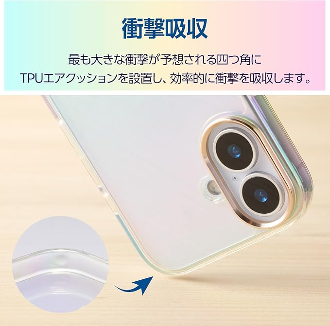 ■オーロラのような輝きが美しい、ポリカーボネートとTPU(熱可塑性ポリウレタン)の2素材を組み合わせたハイブリッドケースです。