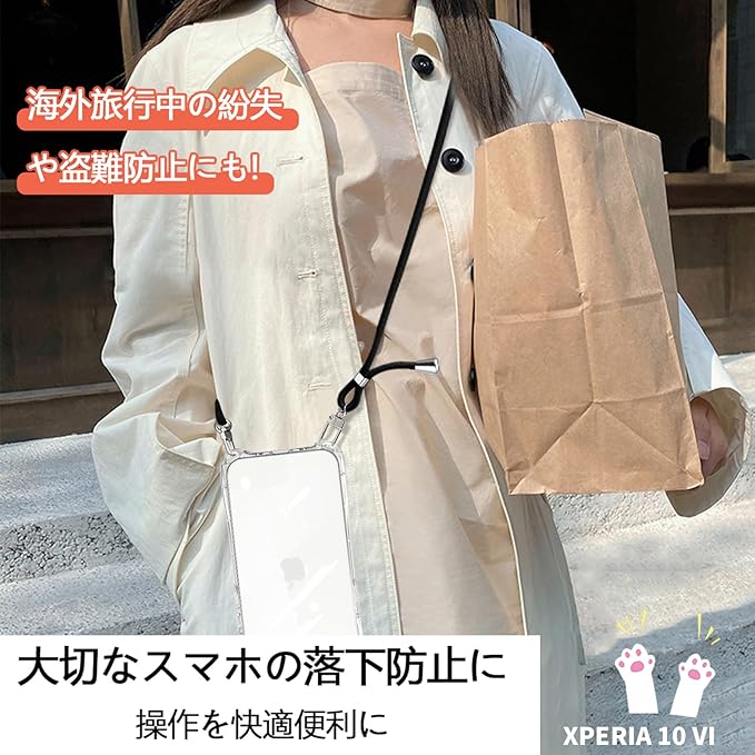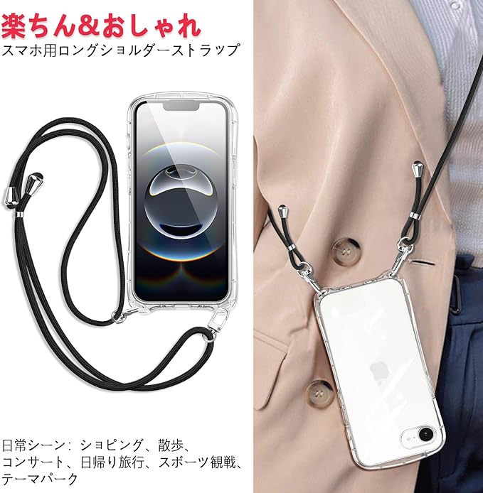 【ネックレスケース】シリコンケースには首から下げられるようにショルダーストラップが付いており、まるでアクセサリーのようにスマホを着用できます。落下防止はもちろん、紛失防止にも役立ちます。 特に旅行や、小さなお子様がいるお母さんにおすすめ、手荷物がある時にスマホを持ち続ける必要がなくなりますし、スマホを落としたり無くしたりといった心配もなくなります、バッグから携帯を取り出す手間がはぶけます。