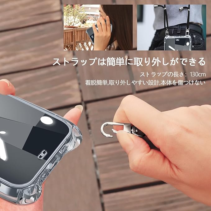 iPhone 16e 用 ケース クリア ショルダー いphone16e スマホケース アイフォン16e カバー 全透明 耐衝撃 肩掛け 首掛け 可愛い かわいい 韓国 透明 TPU 長さ調整可能 取り外し可能(クリア) | KAZESHOP