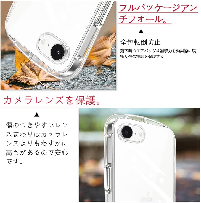 【耐衝撃】その耐衝撃性能は第三者機関の試験による米軍MIL規格をクリアするほど高いことが証明されております。ケースの四隅部分に"衝撃吸収テクノロジー"を採用し、これにより角からの衝撃を受けてもその隙間がクッションの様に本体への衝撃を吸収します。万が一スマホを落としてしまった場合でも、落下時のダメージを最小限に抑えることが可能となっており。