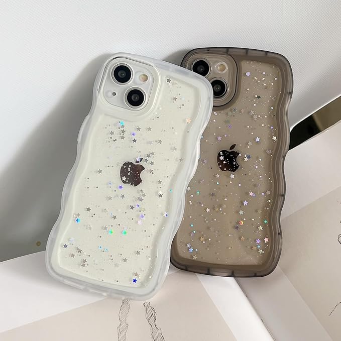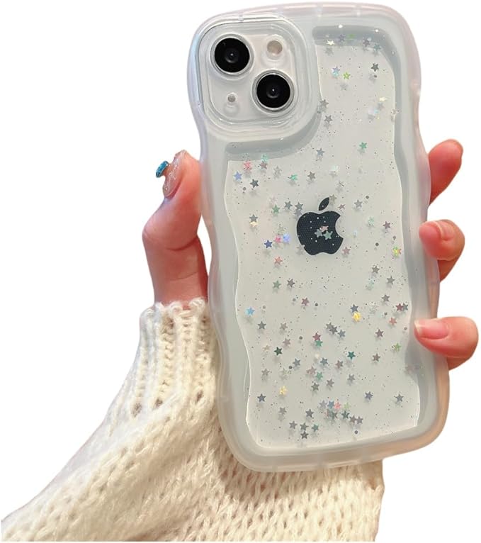 きらきら iPhone 16e ケース クリア 透明 ラメ入り 星 キラキラ ウエーブ 波型フレーム かわいい アイフォン16e カバー 大人 可愛い デコレーション 女性 人気,白 | KAZESHOP