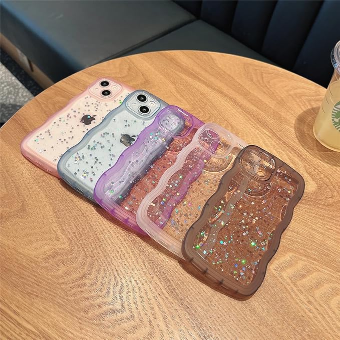 きらきら iPhone 16e ケース クリア 透明 ラメ入り 星 キラキラ ウエーブ 波型フレーム かわいい アイフォン16e カバー 大人 可愛い デコレーション 女性 人気