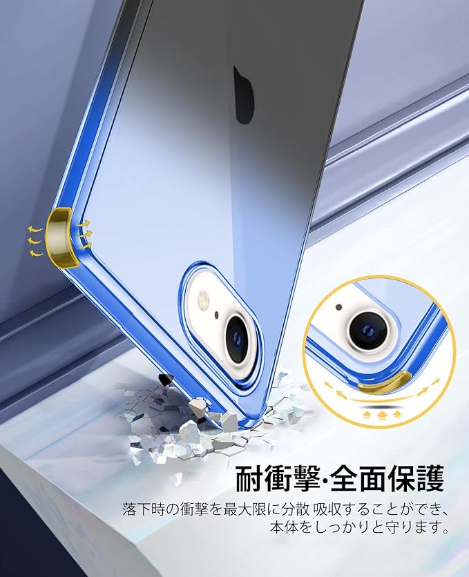 iPhone 16e ケース クリア 薄型 TPU 耐衝撃 アイフォン 16e ケースグラデーション色 指紋防止 擦り傷防止 軽量 人気 ワイヤレス充電対応 あいふぉん16E カバー 6.1インチ ブルーブラック | KAZESHOP