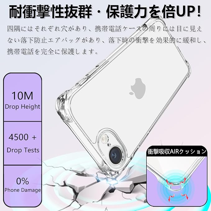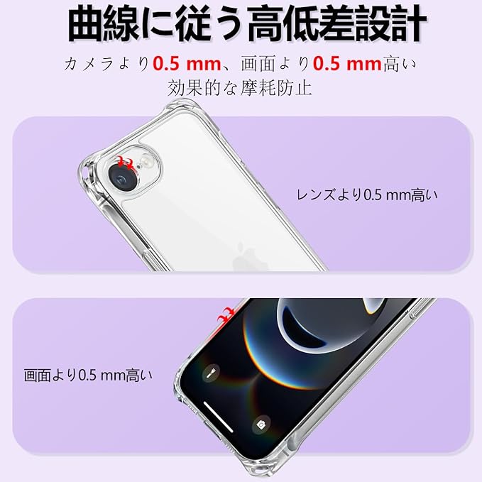【カメラレンズ周りまで保護】縁が高く設計され、カメラレンズや画面が直接地面に接触しづらい!サイドにはメッキ加工を施すことで、変色を防止する設計に!カメラ穴やスピーカー穴の位置・形状も、端末に合わせて精密に設計されています。軽量でスリムなクリアケース、徹底的に衝撃からガード!