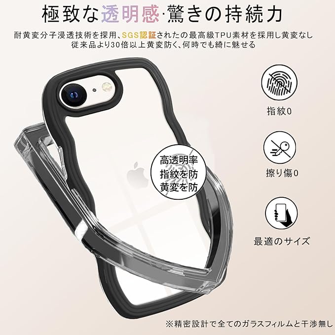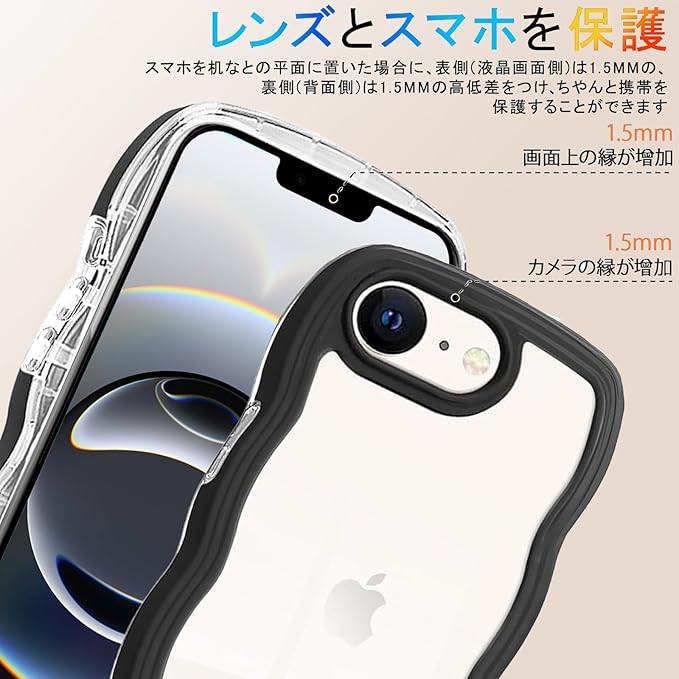 【かわいい波枠】これはiPhone iPhone 16e ケース用のクリアユニークな境界デザインで。かわいい波状のボーダーが指にフィットし、摩擦が高まります。明るい色を追加して、携帯電話をよりファッショナブルで目を引くようにします。ファッションと実用性の完璧な組み合わせ。柔らかTPU素材なので着脱簡単です。サイド周りのウェーブ部分はプラスチック素材で取り外し可能です。 ★★ご注意:背面にはアクリルスタンドや写真などを入ることができません。