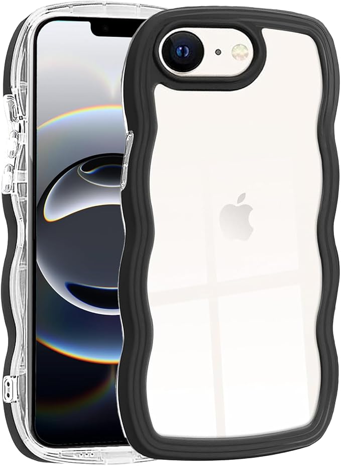 iPhone 16e ケース クリア ウェーブ アイフォン16eケース 韓国 うねうね おしゃれ 黄ばみなし かわいい ソフトTPU 滑り止め 薄型 軽量 2イン1 iPhone 16e スマホケース ワイヤレス充電対応 ストラップホール付き アイフォン 16e ウェーブ カバー (クリア/ブラック) | KAZESHOP