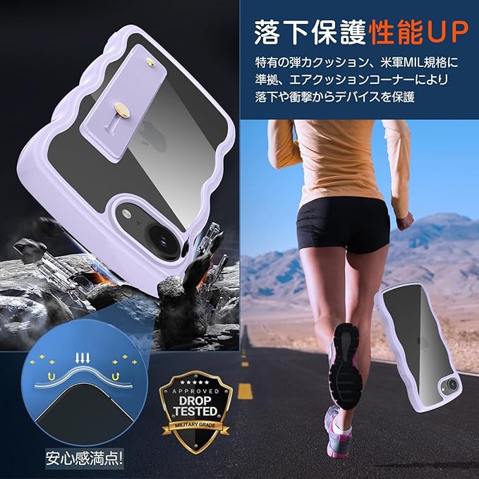 【保護、落下防止、軽薄である】 ハンドベルト付き、落下防止可能、手が小さい方でも落とす心配がありません。携帯電話ケース縁が高く、カメラレンズや画面が直接床面にぶつかりにくい設計です。を落とした時も、大切なレンズや画面を護ります。非常に軽い、各ボタン位置にぴったりフィットし、充電するやイヤホンで音楽を聴くことにも支障なく使用でき。