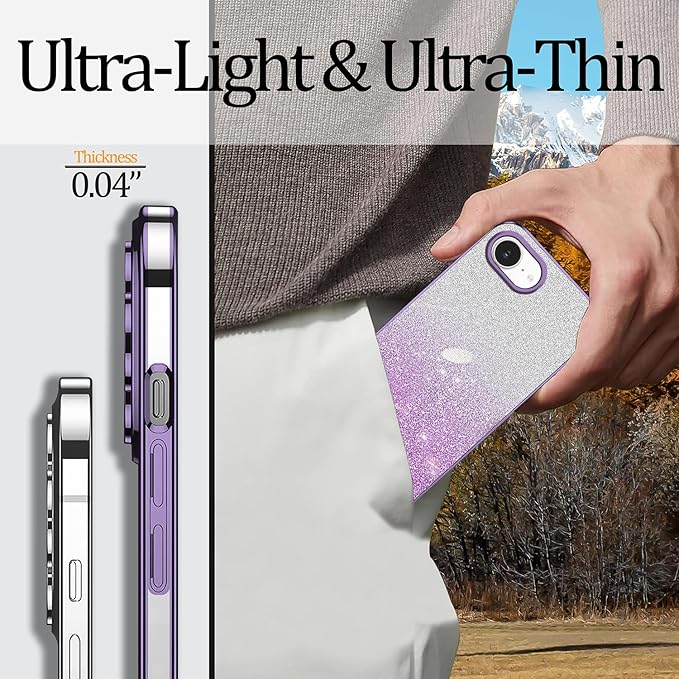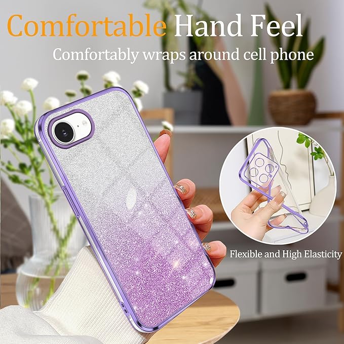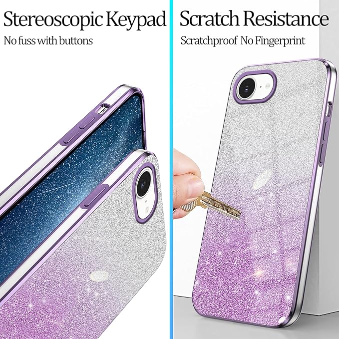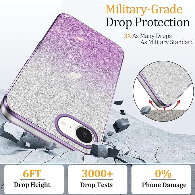 【おしゃれなラメ入りデザイン】高品質のTPUクリアアウターシェル+光沢のあるシルバーのインナーフィルムの二層構造で、とても光沢のあるかわいいデザインのiPhone 16e カバー耐衝撃用保護ケースです。