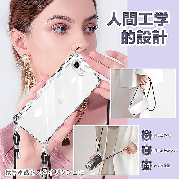 [多用途携带和时尚设计] アイフォン16e ケース クリア 専用デザインです.ご購入前に必ずの機種を確認してください.柔軟で弾力性のある耐久性のある液体シリコーン素材は、柔らかく快適なグリップを可能にします。ネックバンドの電話ケースは高品質の液体シリコンで作られ、透擦り傷防止 柔らかい手触り滑り止め 黄変防止衝突や引っかき傷から電話を保護できます 調節可能なショルダークロスボディネックレス このアクセサリーはファッションだけでなく、通常のストラップよりも快適で実用的です。 ネックストラップは使うシーンに合わせて簡単に取り外すことができます。作業、旅行、出張、ショピング、散歩、コンサート、パーティーに最適です。手を離しても、携帯電話を携帯できます。
