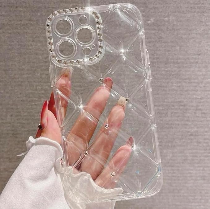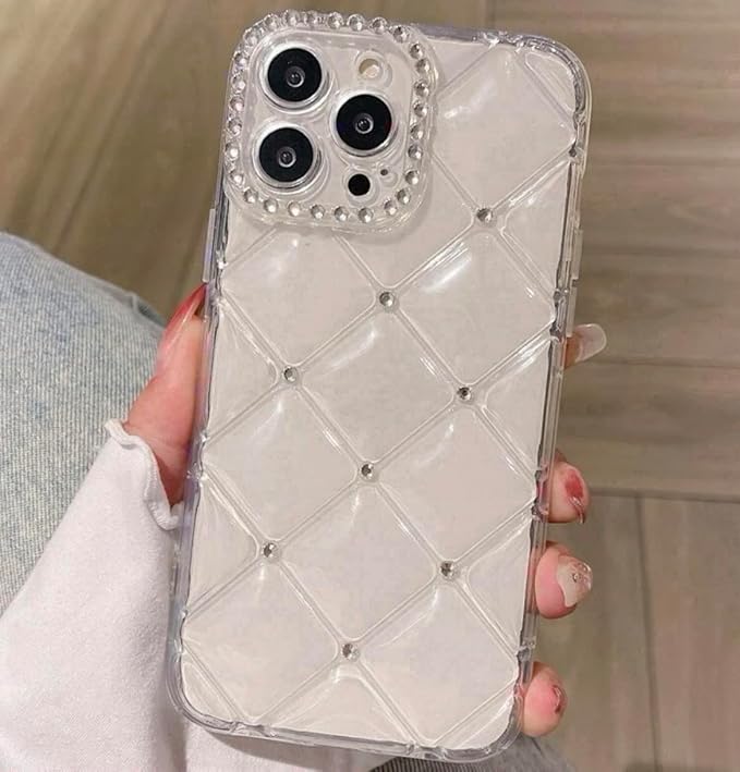 アイフォン用ケース シルバーストーン キルティングケース 凸凹 大人 きらきら 可愛い スマホケース カバー ソフト キルティングデザイン レディース 女性 かわいい カワイイ シルバー アイフォンケース お洒落 (クリア 透明, 16e用) | KAZESHOP