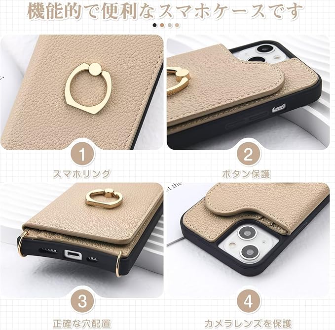 上品なレザー製オシャレデザインの中に高機能さを併せ持つショルダーケースです。機能性とエレガントなショルダーストラップのスタイリッシュなデザインを両立させたケースです!●素材には、ライチ柄した上質なアーティフィシャルレザーを採用。もっちりとした質感で優しく手になじみます。●磁気式開閉設計、より便利に使用。●衝撃や傷からスマートフォンを守る、耐衝撃性・耐久性に優れたソリッドプロテクション。●好きなデザインでスマートフォンケースをおしゃれに。●調整可能のショルダーストラップ付き、自分お好みで長さを調節できます。両手が解放さ●裏側には2箇所のカードポケットと1箇所フリーポケットがあります。カード類Suicaや小銭、定期券、レシート、名刺などの収納にも優れている携帯ケースです。抜群なカード収納機能です。ご注意▼*必ず機種と色をご確認の上、お選びください。*万が一購入商品に不具合やご不明点があった場合はレビュー前に店舗へお問い合せください。