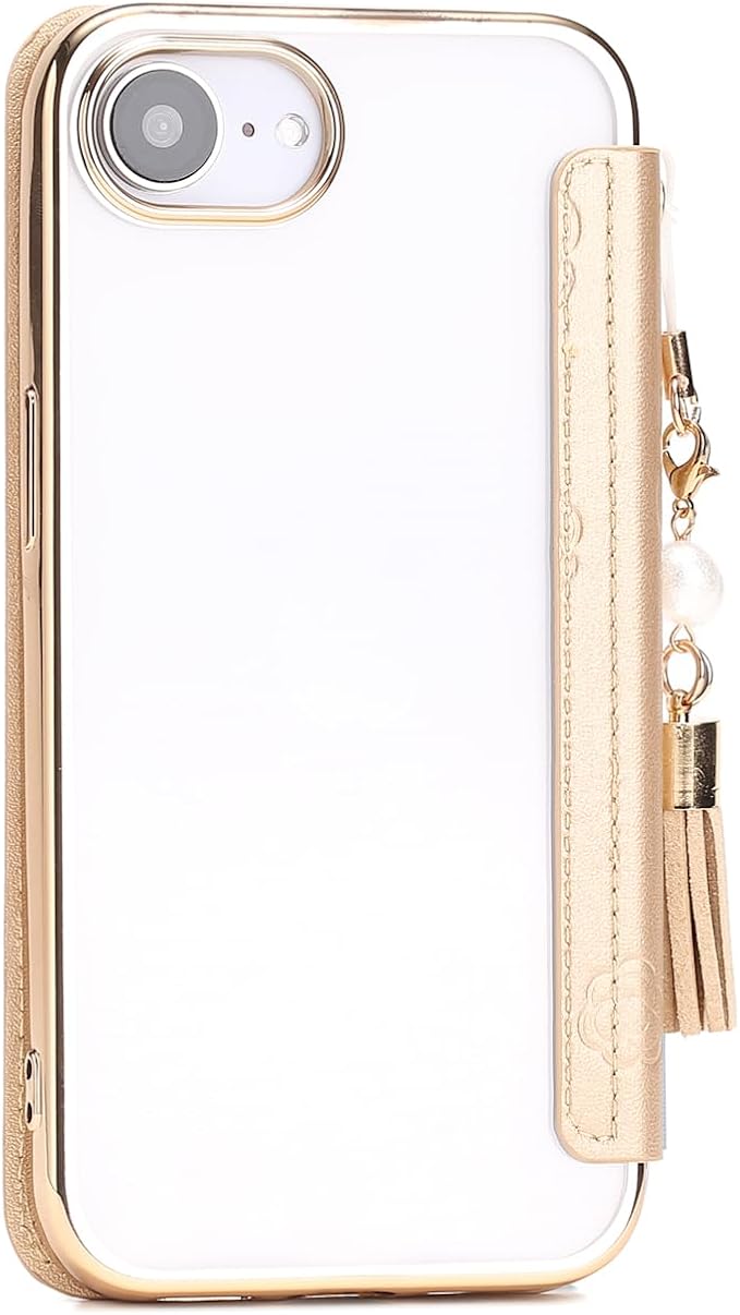 iphone16e スマホケース 手帳型 クリア背面 レザー マグネットなし 6.1インチ ワイヤレス対応 メッキ加工 カード収納 鏡付き 押し型のカメリア iphone16e 手帳型ケース かわいい メンズ レディース より薄い より軽い 真珠タッセル付き アイフォン16e 携帯カバー おしゃれ 便利 ファッション カジュアル 耐衝撃 ハイセンス ゴールド | KAZESHOP