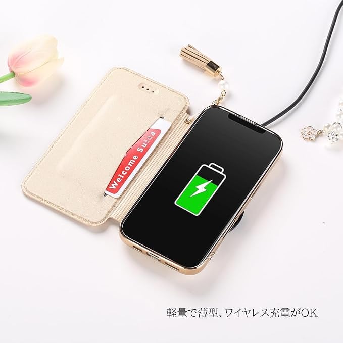 【タッセル付き式、透明バック式,エンボス工芸】タッセル付き、非常に優しくて、ハンドバッグ中でも探しやすいです。便利なデザイン、片手で簡単に開く、マグネット付きないので、カード面を直接に接しないので、磁気カード類が壊れる心配はあり。透明なバックので、iPhoneのバック本体を見て、スペシャルな高級感なデザインです。エンボス工芸で、皮革に凹凸模様の花柄をつけること、質感も手触りも色合いも満足させていただきます。