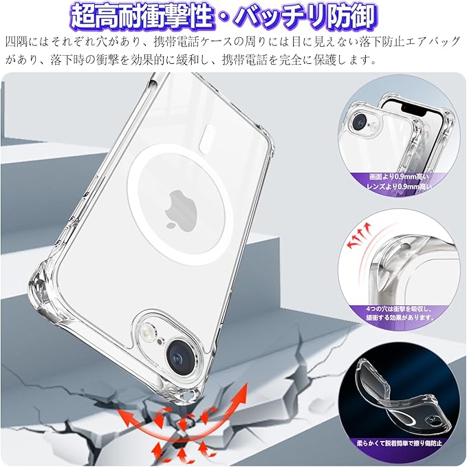 【高品質な素材】この透明な携帯ケースは、柔らかいTPU素材を採用して作られており、スマホ本体に近い手触りを感じることができ、持ち心地も快適です、落下のリスクも減らします。酸化を防ぐ特殊加工を使って、黄ばみにくく、透明感を長期間保持します。本商品は端末に触れるケース裏側に極小さな微粒子上の突起処理を行い端末の発熱を軽減する散熱加工を行っております、気泡の発生も防ぎます。