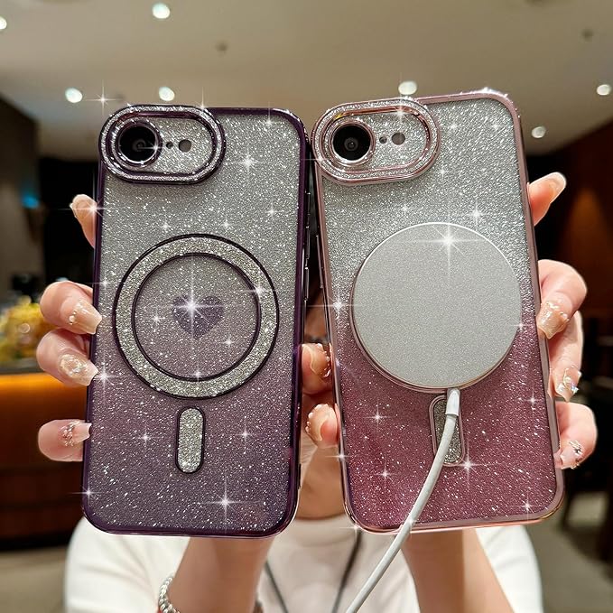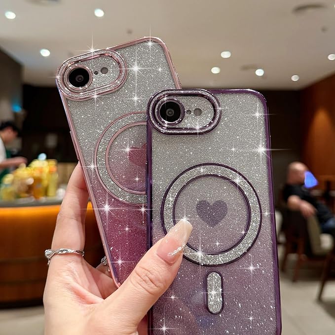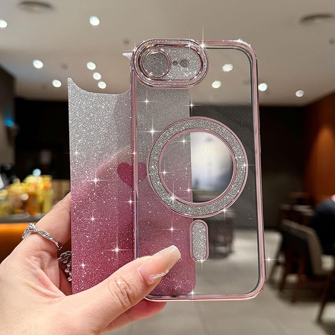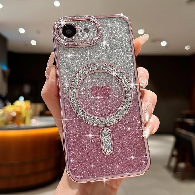 Lafunda iPhone 16e用 ケース Magsafe対応 キラキラ 可愛い 女の子 人気 ブリンブリン フォンカバー スパークリング ハート 透明 メッキ加工 カメラ保護 耐衝撃 軽薄型 磁気スマホケース アイホン 16e 用携帯 ピンク | KAZESHOP