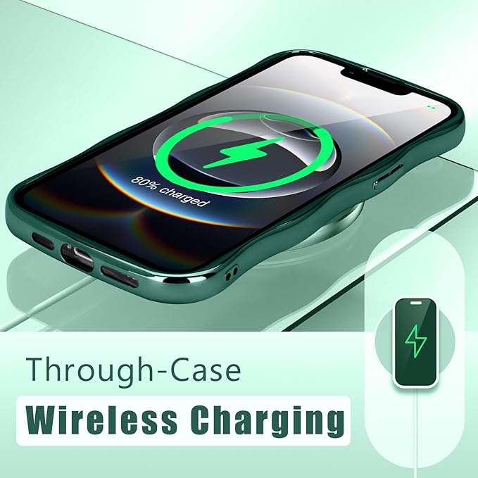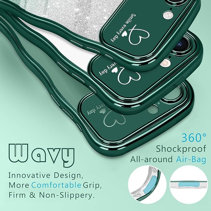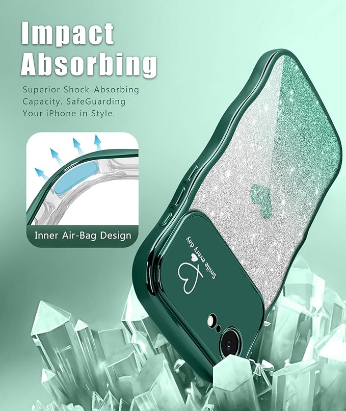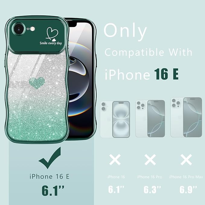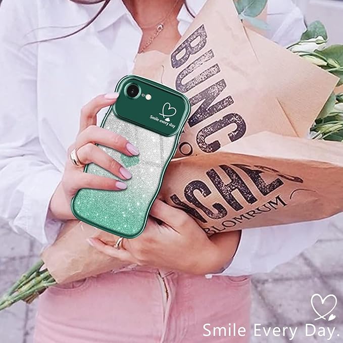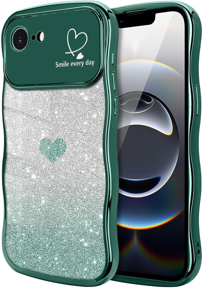 Teageo iPhone 16e 対応 ケース、キラキラ カーリー ウェーブ 軽薄型 柔らかく シリコン 衝撃保護 落下防止 携帯電話カバー 適用 iPhone 16e スマホケース(ダークナイトグリーン) | KAZESHOP