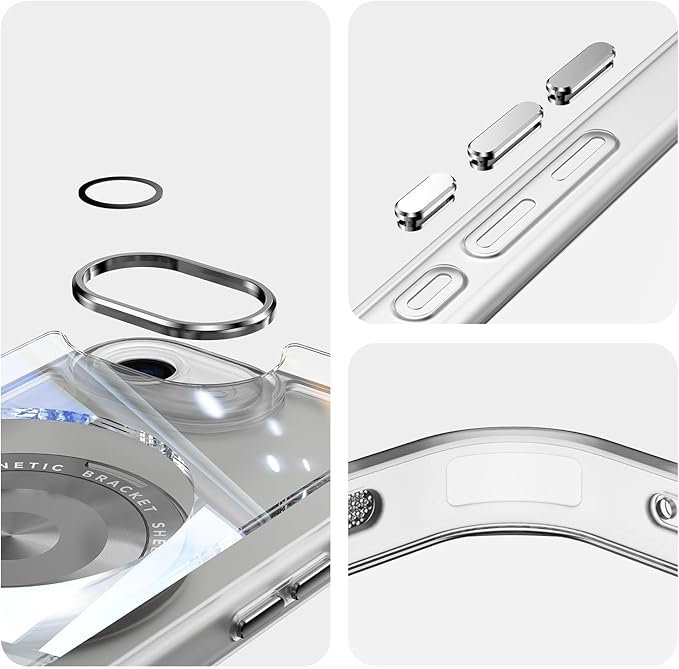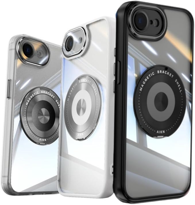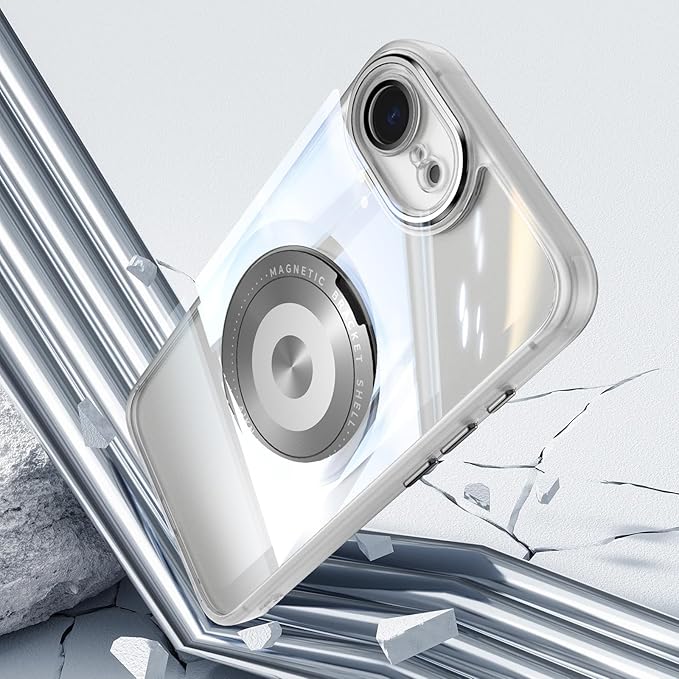 iPhone 16E 用 ケース リング付き リング360 回転スタンド機能 縦横両対応 透明 黄ばみ防止 ワイヤレス充電 アイフォン 16E スマホケース レンズ保護 米軍規格 耐衝撃 携帯カバー マグネット搭載 車載ホルダー マグセーフ対応 おしゃれ クリア(ホワイト) | KAZESHOP