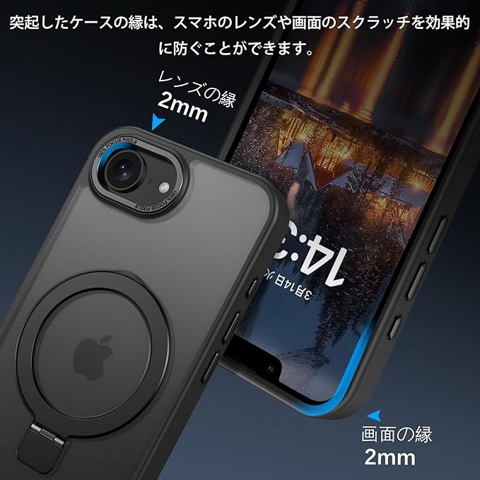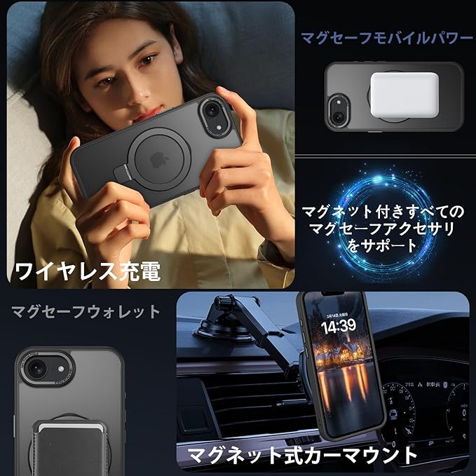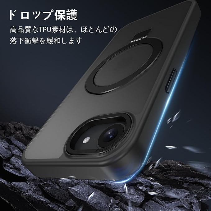 DUEDUE iPhone 16E ケース MagSafe対応 アイフォン 16e ケース マグネット搭載 スタンド機能 120 開閉可能 ブラック 半透明のデザイン 指紋防止 耐衝撃 一体型 薄型 TPUケース 車載ホルダー対応 ワイヤレス充電 全面保護 | KAZESHOP
