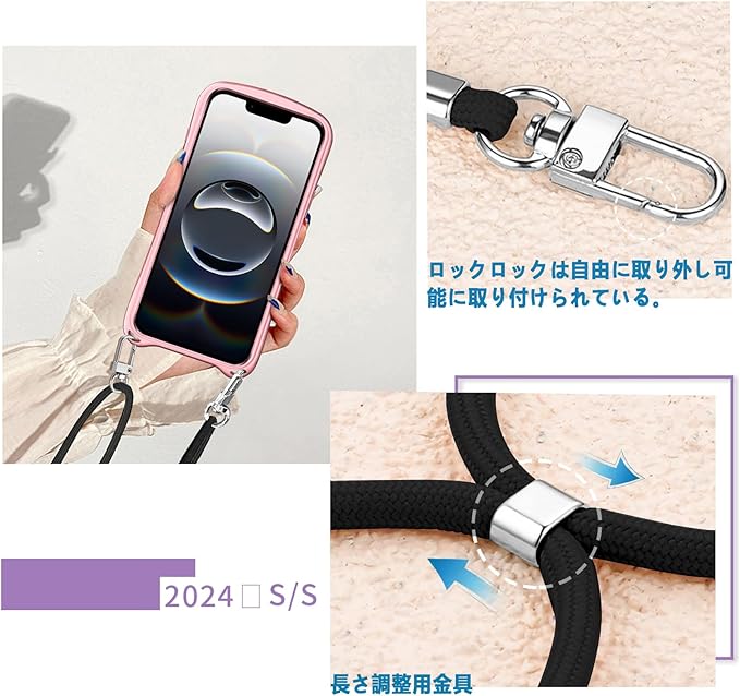 【使いやすさ・長さ調整可能】柔らかいナイロンストラップで首を快適に保ち、金属製のアジャスタブルエンドで、快適な長さに調整できます、手を自由に、ストラップの全長は1.3メートルです。ストラップを取り外して、電話ケースを単独で使用できます。
