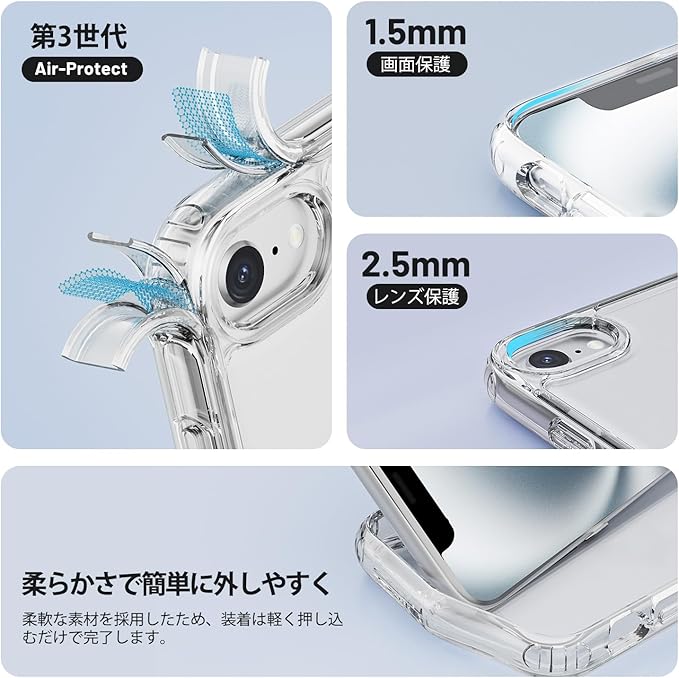 【極めて透明・薄く、耐衝撃性】WHTMM iPhone 16E 用 ケース クリア TPU+PC 透明 耐衝撃 滑り止め 指紋防止 米軍MIL規格 黄変防止 スマホケース iPhone 16E 対応 | KAZESHOP
