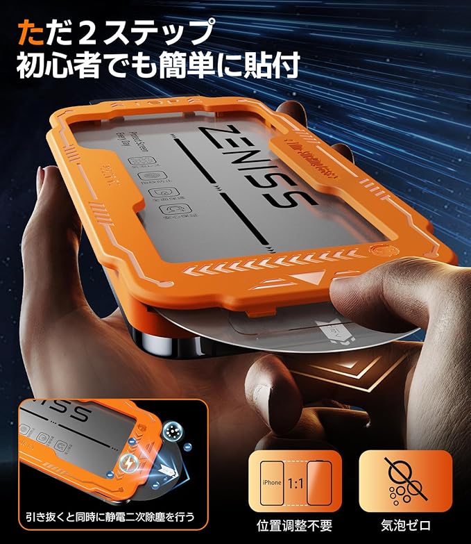 【業界初 iphone用の 16e ガラスフィルム-失敗率0%】iphone用の 16e フィルムを貼る際、位置がずれる、ホコリが入る、気泡ができる、フィルムの付着の失敗……といったお悩みはありませんか?これらの問題を解決するため、画期的なホコリ除去ガイド枠ガラスフィルムを開発しました!革新的な自動位置合わせと自動吸着技術により、2ステップで簡単に貼り付けが完了。息をするように簡単に装着可能!スクリーンをきれいにした後、ガイド枠をiPhoneの画面に置き、ホコリ除去ストリップを引くだけで簡単にフィルムを貼ることができます。気泡レス、成功率up!経験のない方でも完璧にフィルムを貼り付けられます。パッケージの内容:いphone 16e ガラスフィルム(6.1インチ)*2(複数回購入の必要なし、簡単に交換可能)清拭ツールキット*2 ガイド枠*1確認して下さい。2年間の保証付きです。何か質問がある場合は、弊社に連絡してください。12時間以内にお客様の問題を解決します!