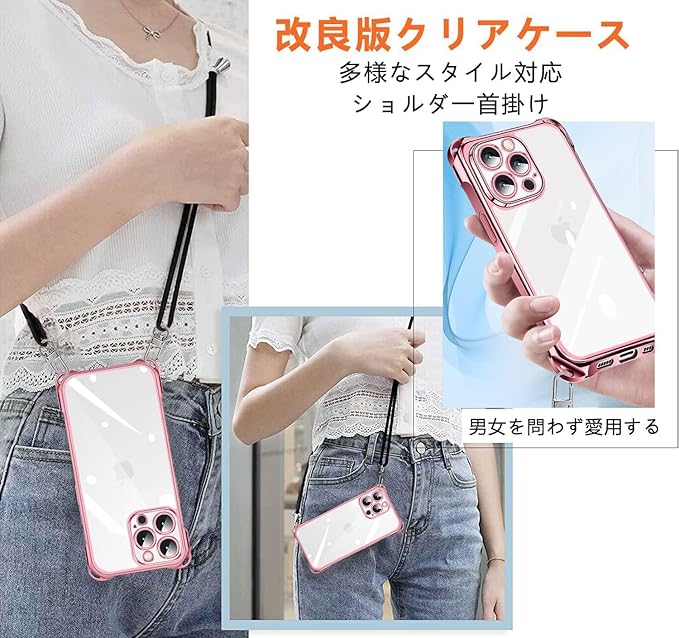 iPhone 16E se4 2025 ケース クリア ショルダー TPU メッキ加工 カバー iphone 16E se4 ストラップケース新型韓国 チャーム シリーズ 肩掛け 斜めかけ 首掛け 縄掛け カバー 縄掛 長さ調整可能 薄型軽量 耐衝撃 1.5MM 取り外し可能 電波影響なし Qi急速充電対応 指紋防止 全面保護 落下防止 アイフォン16E se4 スマホケース | KAZESHOP