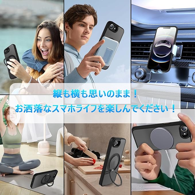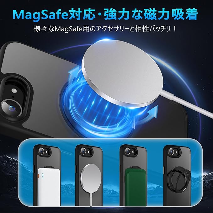 【MagSafe対応・強力な磁力吸着】背面に薄くて強いマグネット内蔵しています、吸着力を高めて、安定感をアップしてエネ損失なしの快速ワイヤレス充電できる。ケースをつけたままマグセーフ機能を快適に使用できます。車載ホルダーでの使用時もとても安心感溢れ、様々なMagSafe用のアクセサリーと相性バッチリ!より安全、安定、急速なワイヤレス充電体験をもたらします。ご注意:この製品はすべての Magsafe デバイスと互換性がありますが、Qi フイャレス充電には適していないため、購入する前にこの点を考慮してください