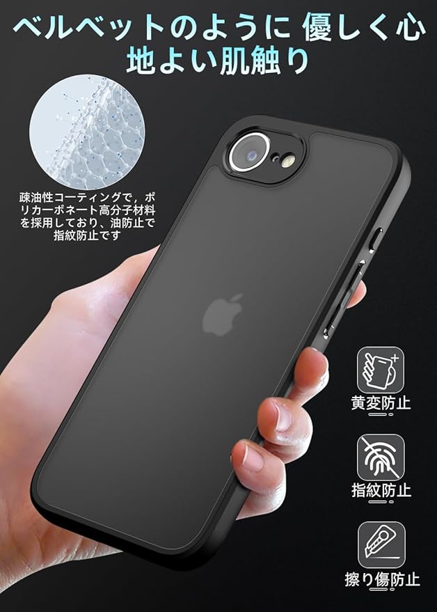 ZXZone iPhone 16e 用 ケース アイフォン 16e SE4 カバー 耐衝撃 MIL規格 滑り止め 防指紋 ストラップホール ワイヤレス充電 スマホケース ブラック(iPhone 16e 対応) | KAZESHOP