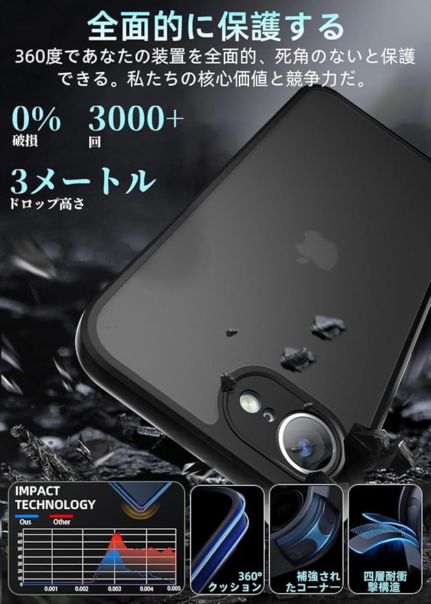 【耐衝撃】衝撃を受けやすい大事なカメラに、本体よりわずかにソフトなTPU+PCで高く設計しており、不意に落下してしまいました際の衝撃をある程度に吸収し、地面に置いた場合でもレンズが直接に触れず、傷つきにくくなっています。