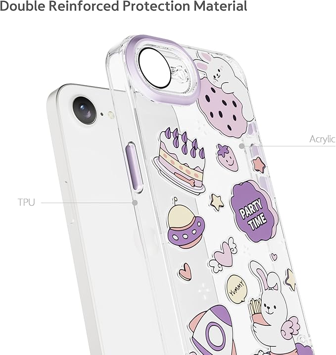 iPhone 16e ケース レンズ保護 ラップホール付き 耐衝撃 滑り止め SE4 ケース 指紋防止 米軍MIL規格 黄変防止 ワイヤレス充電対応 スマホケース(うさぎ, iPhone 16e) | KAZESHOP