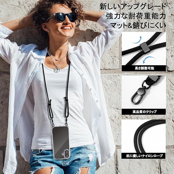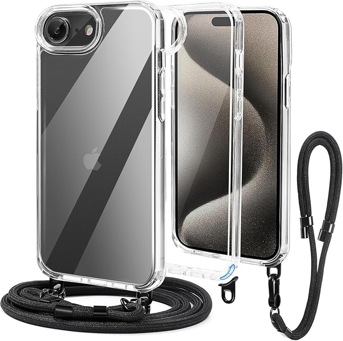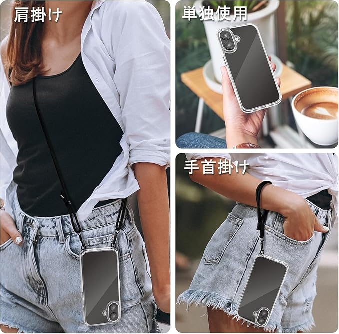 Handodo iPhone 16e用ケース スマホケース アイフォン16用カバー ストラップ2種付き 取り外し可能なフック 調節可能 解体が容易 首掛け/肩掛け/斜め掛け 紐付き 高精細HD透明PC + 軽量 シリコン TPU 耐衝撃 傷防止 全面保護対応 アイフォン16ケース | KAZESHOP