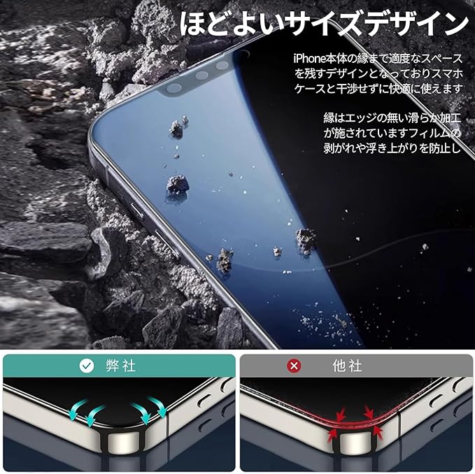 ☆【ほどよいサイズデザイン 、全面保護】正確なラウンドエッジ加工により、引っ掛かり感がなくサイドからの衝撃を和らげ気持ち良い滑らかな質感を実現しました。iPhone本体の縁まで適度なスペースを残すデザインとなっており、フィルムの剥がれや浮き上がりを防止し、iPhone16Eのスクリーンをしっかり守っていきます。スマホケースと干渉せずに快適に使えます。