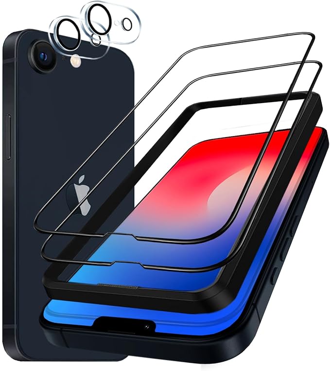DXFAU【4枚入り】ガラスフィルム iPhone 16E 6.1インチ 高透過率 全面保護フィルム 硬度10H 滑らかなタッチ操作 指紋付着防止 気泡防止 ガイド枠付き 貼り付けは簡単 アイフォン16e用 強化ガラスフィルム(2枚入り)+レンズ保護フィルム (2枚入り) | KAZESHOP