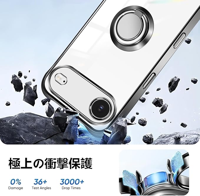 iPhone air ケース クリア 360度回転スタンド リング付き アイフォン air スマホケース 耐衝撃 対応 いphone air カバー 透明 TPU ネック ショルダー 肩掛け 斜めかけ 縄掛けカバー ストラップ付き 薄型 軽量 紐付き ネックストラップ ショルダー 肩掛け 縦/横 調整可能 取り外し可能 落下防止(ブラック) | KAZESHOP