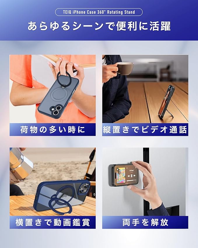 特徴 360度保護, フレキシブル, リングホルダー, ワイヤレス充電対応, 黄ばみ防止