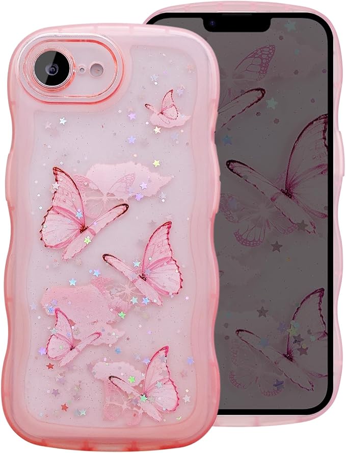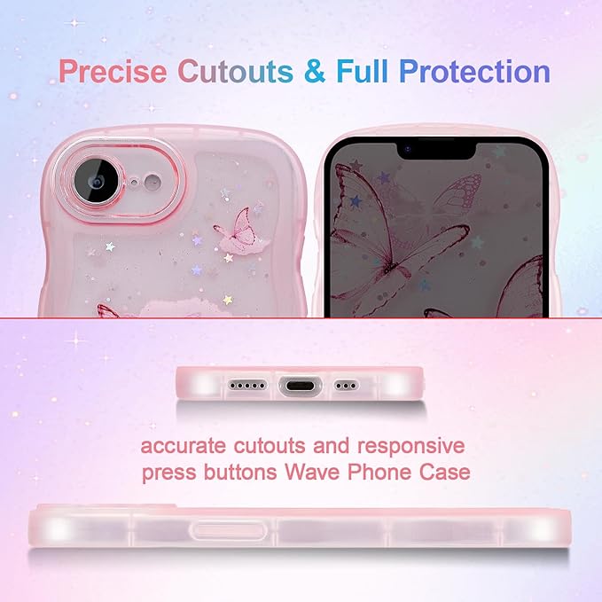 UEEBAI 対応 iPhone 16e/iPhone SE4 用の ケース が光る レーザー グリッター 光沢カバー 可愛い おしゃれ 蝶 キラキラ ケース 透明 TPU ウェーブデザイン スマホケース 軽量 耐衝撃 女性 人気 波型 バンパー スマホケース - ピンク | KAZESHOP