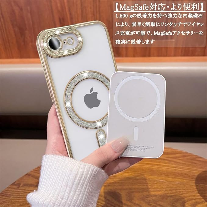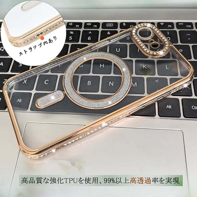 スマホケース 対応 iPhone 16e クリア ケース 透明 メッキ加工 Magsafe対応 きらきら ブリンブリン 衝撃吸収 かわいい キラキラ 女性 人気 キャラクター ワイヤレス充電対応 おしゃれ ストラップホール付き アイフォン16e 携帯カバー (ゴールド, iPhone 16e) | KAZESHOP