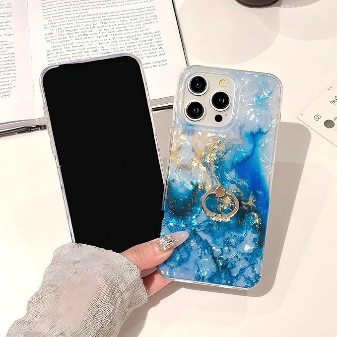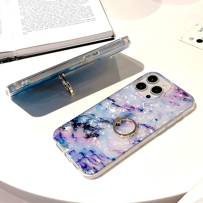 iPhone 16 用 ケース リング付き 大理石柄 シェル風 キラキラ ラメ いPhone ケース 韓国 かわいい オーロラ ゴージャス 綺麗 人気スマホケース マーブル 半透明 オシャレ シンプル マルチカラー ストラップホール付き | KAZESHOP