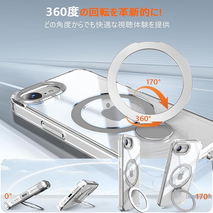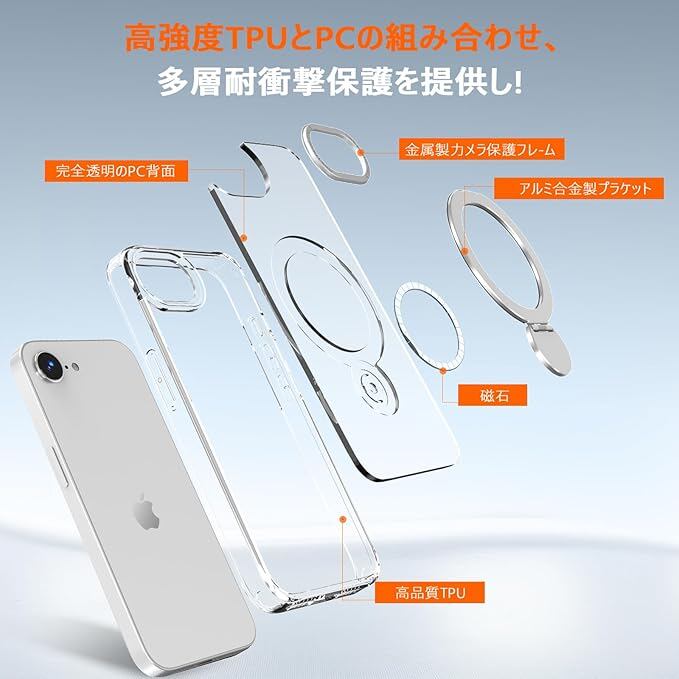 iphone 16e 用 ケース MagSafe対応 ワイヤレス充電 いphone 16e ケース 高耐久性 米軍MIL規格 アイフォン 16e カバー リング スタンド マグネット搭載 スマホケースiphone 16e 隠し収納式 縦横両対応 スマホカバー アイフォン 16e 全面保護 黄変防止 軽量(6.1インチ)クリア【SHANGHAO】 | KAZESHOP