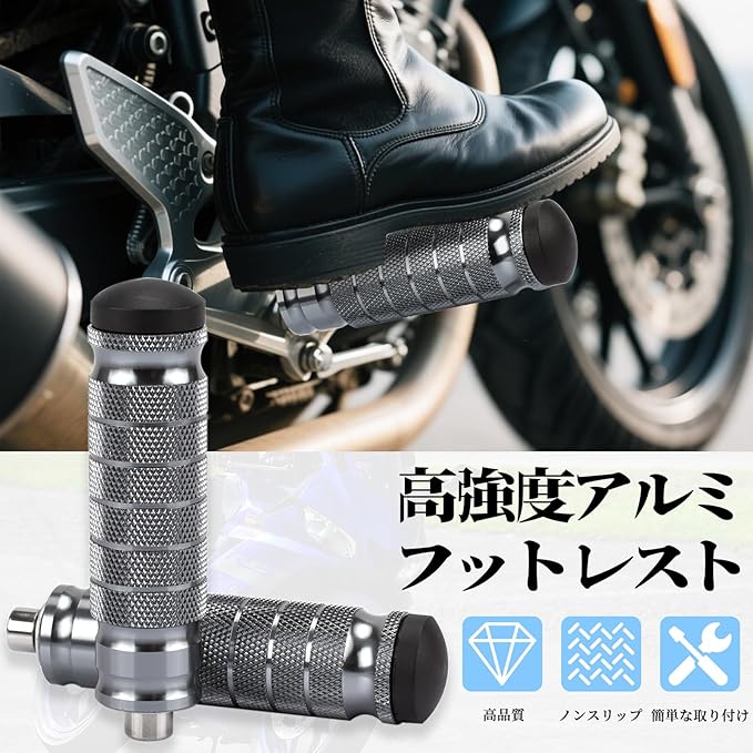 【滑りにくい設計】ローレットデザインにより、バイクのフットレストは滑りにくく、足をしっかりと支え、運転の安全性が向上します。また、足裏とペダルのフィット感も向上し、乗り心地がさらに向上します。雨天時や長距離ツーリングでも安定感抜群。