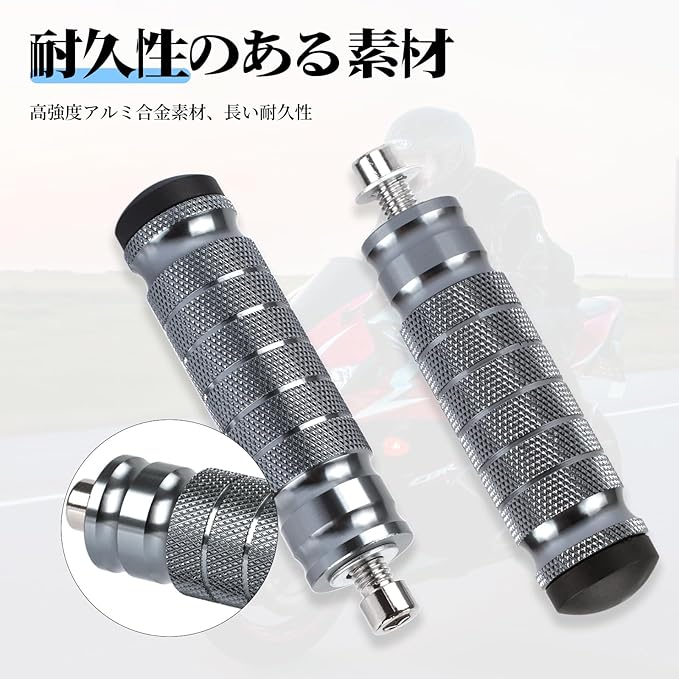バイク ステップ フットペグ ステップバー ローレットアルミ合金製 高強度 高耐久 タンデムステップ ペダル 汎用 M8ボルト 左右セット フロントペダル リアフットレスト(チタンカラー) | KAZESHOP