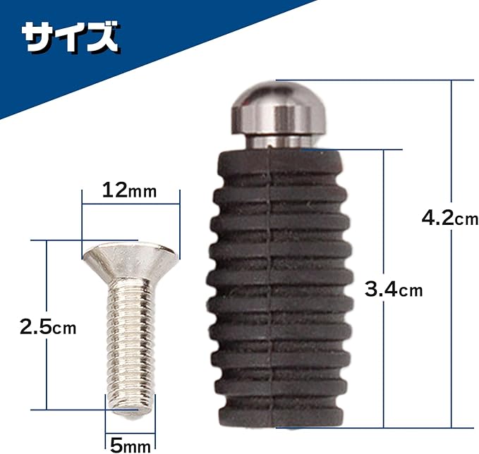 【特徴】シフトペグやブレーキペグ、フットペダルなどにご利用可能。5mmのボルトを使用していますので、サイズさえ合えばヤマハ カワサキ ホンダ スズキなど様々なバイクやオートバイでご利用いただける、汎用性の高いフットペグとなります。補修などに便利な1個での販売と、お得な2個セットも販売しております。