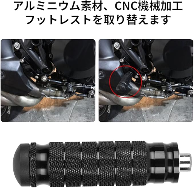 Qiilu オートバイ用フットペグ 滑り止めフットペグ 左右セット M8スレッド CNC機械加工 取り付けが簡単 アルミビレット 汎用 足置き 改造用ペグ アイテム9.3 x 2.4 x 2.4 cm ブラック | KAZESHOP