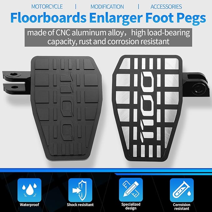 高品質の素材:フロアボード拡大フットペグはCNCアルミニウム合金製で、軽量設計、高い耐荷重性、錆びや腐食に強いです